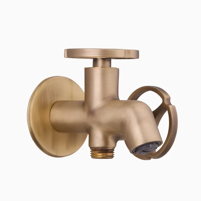 The 2-in-1 Bib Cock with Flange is crafted from premium brass, known for its exceptional strength and long-lasting durability. This robust material ensures reliable performance over time. The elegant brushed bronze finish adds a sophisticated touch while offering a surface that endures daily use and resists wear.