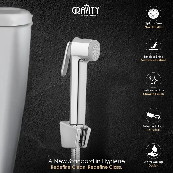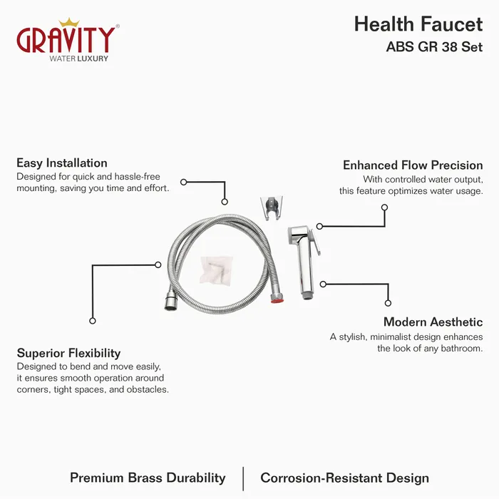 Introducing the Gravity ABS GR 38 Set, an efficient bathroom accessory. This set includes a durable ABS health faucet, a flexible hose, and a sleek wall bracket, providing you with all the essentials for a comfortable and hygienic cleaning experience. The ABS GR 38 Set offers a contemporary design and optimized water distribution for a superior performance.