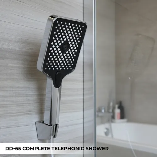 The DD-65 Complete Telephonic Shower is crafted from premium ABS material, ensuring durability and long-lasting performance. The hand shower gun comes in a chrome finish for a sleek, high-gloss look that complements contemporary bathroom interiors.