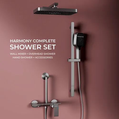 Elevate your bathroom experience with the elegant Harmony Pendle 3-in-1 Wall Mixer Telephonic, featuring a sophisticated grey finish. This versatile wall mixer combines functionality and style, offering three outlets for a fully customized shower experience. With a telephonic design, it seamlessly integrates an overhead shower, spout unit, and hand shower, allowing you to enjoy the perfect shower tailored to your preferences.