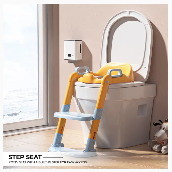 The Step Seat is crafted from high-quality PVC, a durable and child-safe material. The smooth, non-toxic surface ensures comfort while preventing irritation or pinching. The potty seat’s bright and engaging colors add a playful touch to your child’s potty training experience.