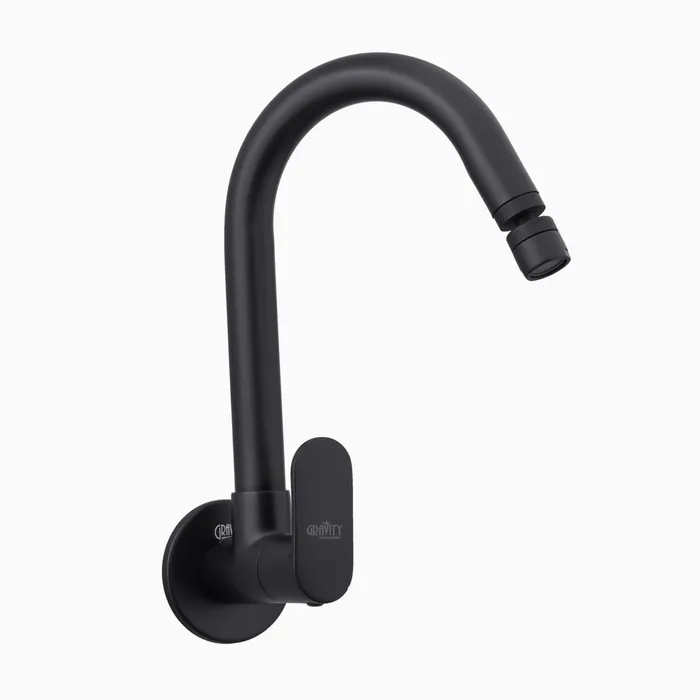 Expertly crafted from high-grade brass, this Wall-Mounted Sink Cock ensures exceptional durability and resistance to corrosion. The matte black finish gives it a refined, understated look that complements various kitchen designs.